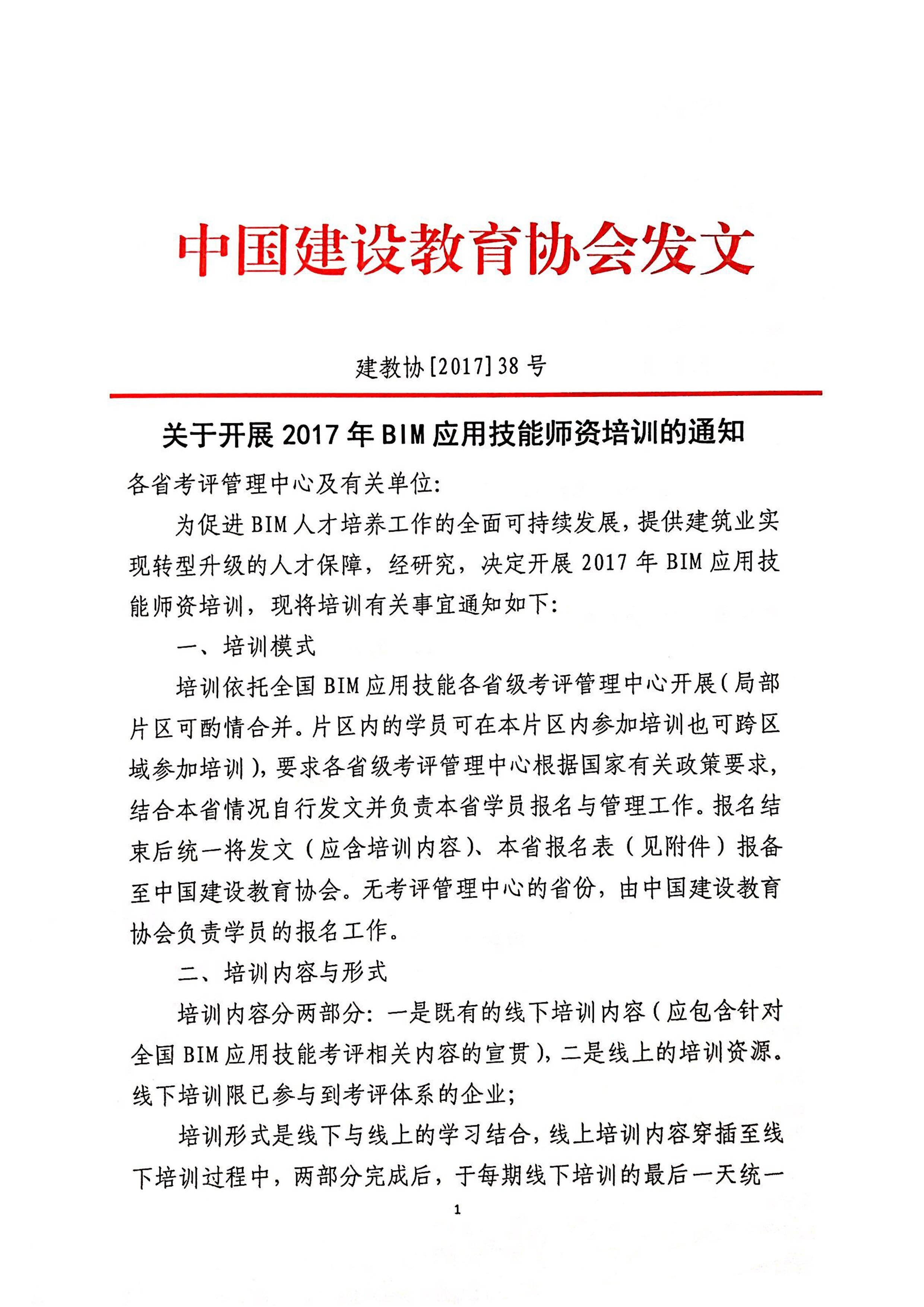关于开展2017年BIM应用技能师资培训的通知