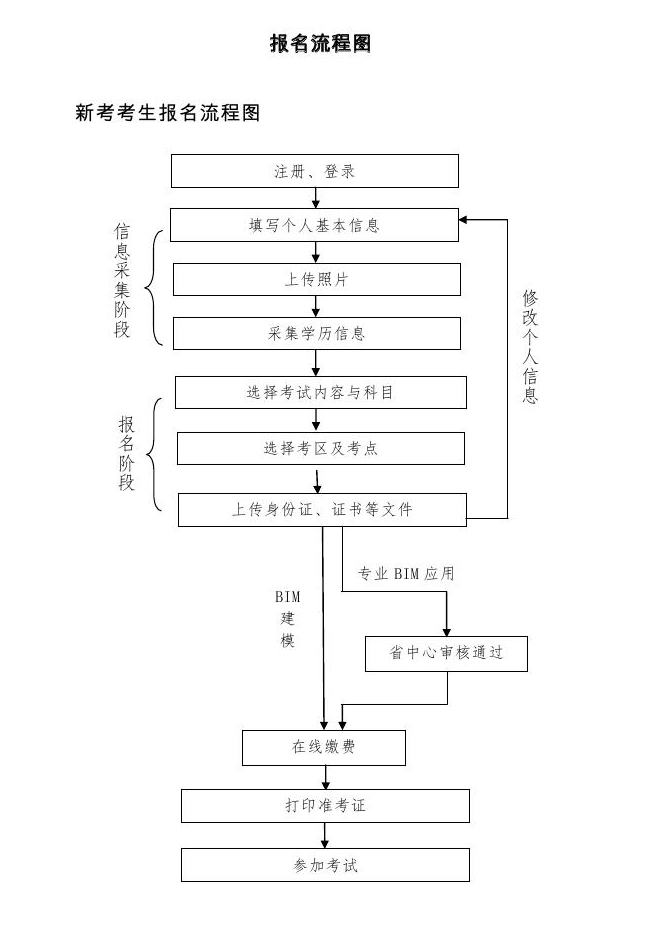 5.考生网上报名时请认真填写个人基本信息,上传相关证明材料扫描件并选择考点,BIM建模报名,直接在线缴纳报名费,专业BIM应用报名,省级考评管理中心审核通过后,在线缴纳报名费完成报名。
