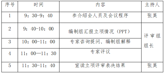 (二)评审专家参照《立项评审指引》对标准立项申请的相关内容进行评审,并就相关内容与编制组主要成员进行现场咨询与交流。
