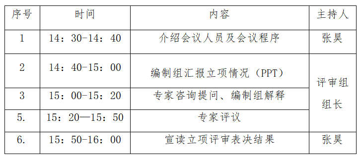 (二)评审专家参照《立项评审指引》对标准立项申请的相关内容进行评审,并就相关内容与编制组主要成员进行现场咨询与交流。